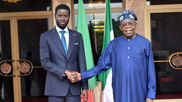 Shugaban Najeriya Bola Ahmed Tinubu ya gana da sabon shugaban Senegal Bassirou Diomaye Faye, a ziyarar farko da sabon shugaban ƙasar ya kai Najeriya.