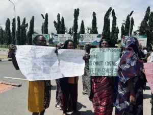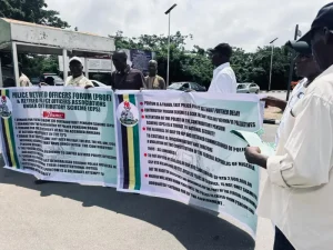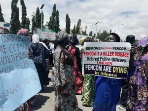Tsoffin ‘yan sanda da suka yi ritaya na gudanar da zanga-zanga a gaban zauren Majalisar dokokin Najeriya inda suke neman Majalisar da ta amince da kudurin dokar fansho na yan sanda da ke gabanta.